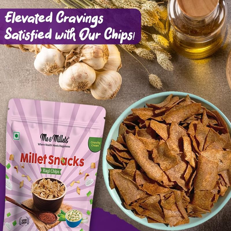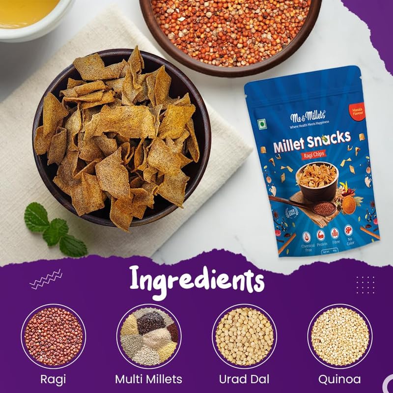 - Ingredients: Me & Millets Ragi Chips are crafted with wholesome ingredients including Ragi Flour and a blend of Millets (multi millets, urad dal and quinoa) for a healthy & flavorful crunch.