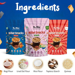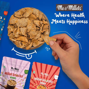 Me & Millets Snacks Assorted Packs Ragi Chip Crunchy Cream 80g, Ragi Chip Masala Flavour 80g & Quinoa Chip Peri Peri 80g (Pack of 3)