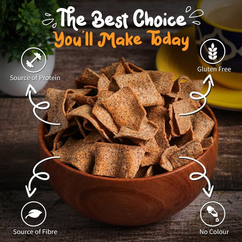 Fresh and Guilt-Free Munching: Indulge in these ragi (millet) based snacks guilt-free. Perfect for kids and adults seeking healthy options, these chips are ideal for low-calorie snacking while offering a crunchy and satisfying bite.