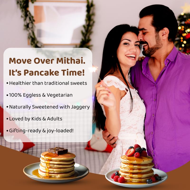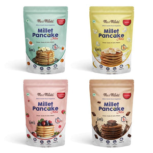 Me & Millets Pancake Mix Gift Pack (150g x4) 鈥 Caramel Vanilla, Banana, Raspberry, Chocolate | Jaggery Sweetened | No Maida | Eggless | Jain Friendly | Diwali Gift for Family, Friends & Corporate