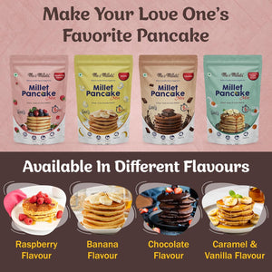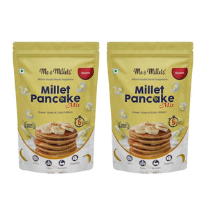 - Me & Millets Banana Millet Pancake mix filled with goodness of jowar, kodo & little millets. No wheat and palm oil at all. It has more protein and fibre in comparison to other regular pancake mixes.