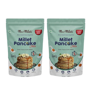 Me & Millets Millet Pancake mix is a wholesome choice made with jowar, kodo, and little millets. It has no wheat or palm oil and It has more protein and fibre in comparison to other regular pancake mixes, making it great for any meal鈥攂reakfast, snack, lunch, or dessert! This mix is free from preservatives, artificial colors, and maida. It鈥檚 eggless and sweetened naturally with jaggery, so you can enjoy it anytime. Plus, it鈥檚 super easy to prepare and tastes amazing! You can use the mix not only for pancakes but also for waffles and crepes. Just add water, cook, and serve with your favorite toppings like maple syrup, fruits, or chocolate spread. This delightful pancake mix is sure to bring a smile to everyone鈥檚 face, young or old, whether you鈥檙e having it for breakfast, a snack, or late-night cravings!