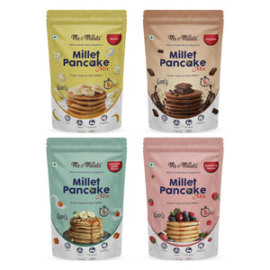 - Me & Millets Caramel and Vanilla, Banana, Raspberry & Chocolate Millet Pancake mix filled with goodness of jowar, kodo & little millets. No wheat and palm oil at all. Have it as a healthy breakfast, snack, lunch or as a dessert after dinner!