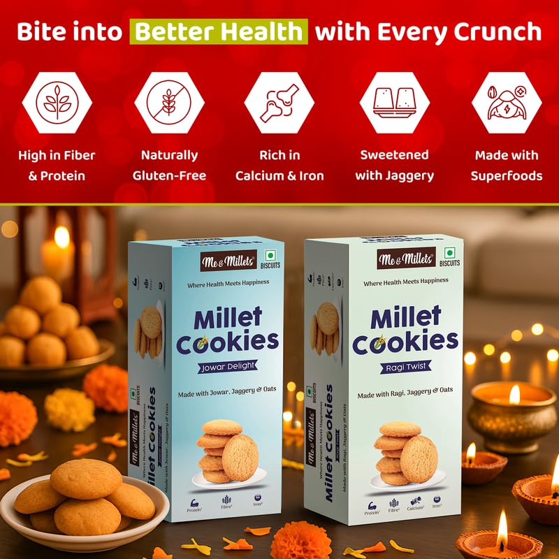 - Wholesome Millet Goodness: Includes Ragi and Jowar cookies (75g each), rich in fiber and nutrients.